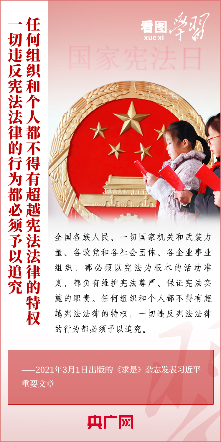 宪法是国家的基础法,是党和人民意志的集中体现。尊崇宪法、学习宪法、遵守宪法、维护宪法、运用宪法,是每个公民的义务。在第十个国家宪法日(12月4日)来临之际,《看图学习》栏目为您梳理习近平总书记关于宪法的主要叙述。一起来学习!